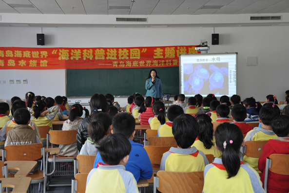 2014年4月9日下午,作为全国科普教育基地,青岛海底世界联合青岛水族馆来到崂山新世纪学校举办了“海洋科普进校园”活动,将丰富的海洋科普知识送到校园,送到学生身边。在学校阶梯教室,青岛海底世界副总经理、中国自然科学博物馆协会水族馆专业委员会秘书长王士莉女士进行了一场主题为“漂浮的伞——水母”的专题讲座。