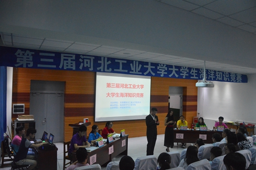 第三届大学生海洋知识竞赛自4月份启动以来,受到同学们的广泛关注。竞赛分为初赛和决赛两个阶段,初赛以网络答题形式开展,竞赛题目涵盖海洋政策法规与权益、海洋行政执法、海洋军事、海洋水文气象、海洋地质、海洋地理、海洋生物、海洋环境、海洋技术、海洋文化、海洋经济、海洋时事、极地大洋、中国海洋、河北海洋等内容。网络答题成绩前6名同学获得参加决赛的资格。现场决赛分为问答、抢答、简答和风险答题等4个环节。选手们流利的回答、自信的微笑,赢得了现场观众一次次热烈掌声。经过激烈竞争,现场决出一等奖1名,二等奖2名,三等奖3名。通过海洋知识竞赛活动,广泛宣传、普及了海洋科学和文化知识,进一步激发了大学生关心海洋、保护海洋、经略海洋、合理开发利用海洋的意识。