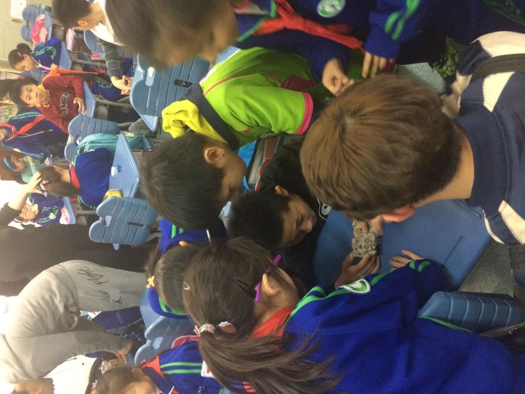 在人大海洋协会同学精心准备的识别海洋生物叫声的小游戏中孩子们迅速的进入了学习海洋知识的状态。随后地大蓝色海洋协会主讲人梅诗雨向孩子们讲述了生命进化的“故事”,丰富多彩的生物种类,形象生动的图片让小朋友们的印象更加深刻。同时,孩子们对社团同学们带来的海洋生物标本十分好奇,在近距离接触生物标本的同时,社团同学们向孩子们详细介绍标本的制作过程。有趣的游戏,生动的讲解,栩栩如生的标本让小朋友们沉浸在海洋知识的氛围中。最后小朋友们向大哥哥、大姐姐们提出了各种各样的海洋生物问题。在这情绪高涨的氛围中,有争辩,有讨论,小朋友们都很享受这次接触海洋知识的机会。